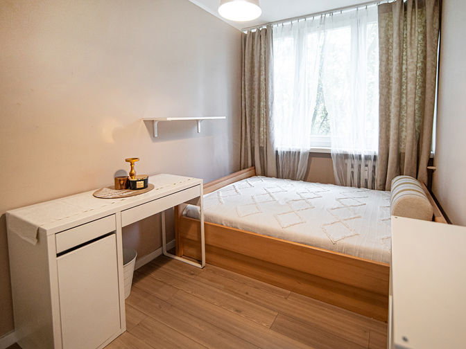 To niezwykłe, 3 pokojowe mieszkanie o powierzchni 58m2 jest idealną propozycją dla osób ceniących sobie spokój i przestronne, dobrze doświetlone wnętrza. Zarówno w pokojach jak i oddzielnej kuchni okna sięgają od ściany do ściany, a najbliższe budynki znajdują się w znacznej odległości, dzięki czemu można poczuć tam dużą prywatność.